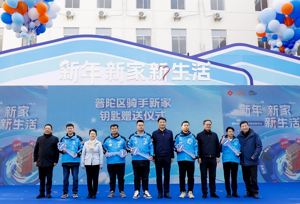当天,入住的蓝骑士还收到一份新年“大礼包”:床品三件套等生活必需品外,普陀区还宣布推出五十大服务举措,包括打造“同心同行”培训课程、助推新就业群体党群工作、探索“寒托班”等,做好骑手保障与发展支持。